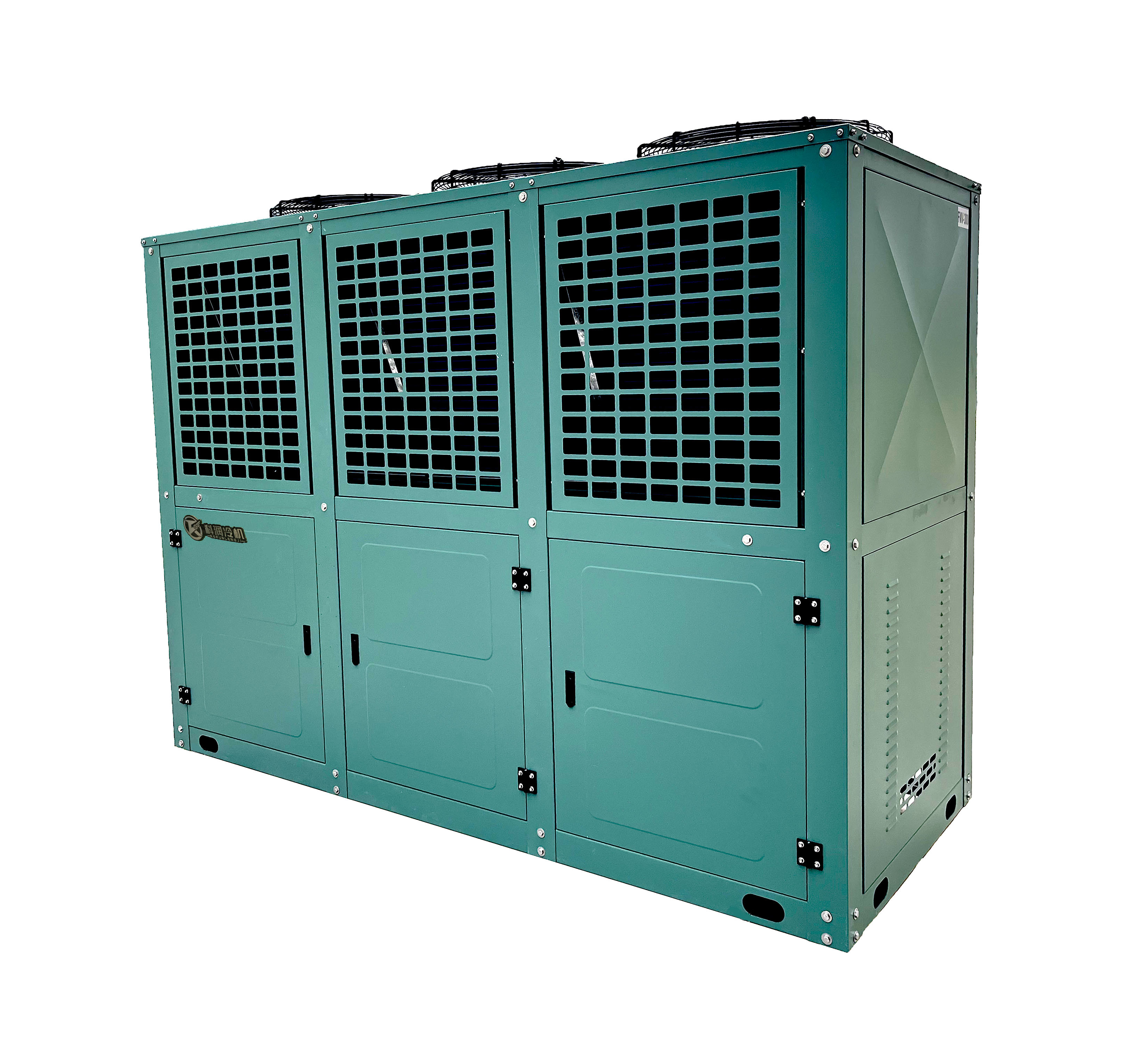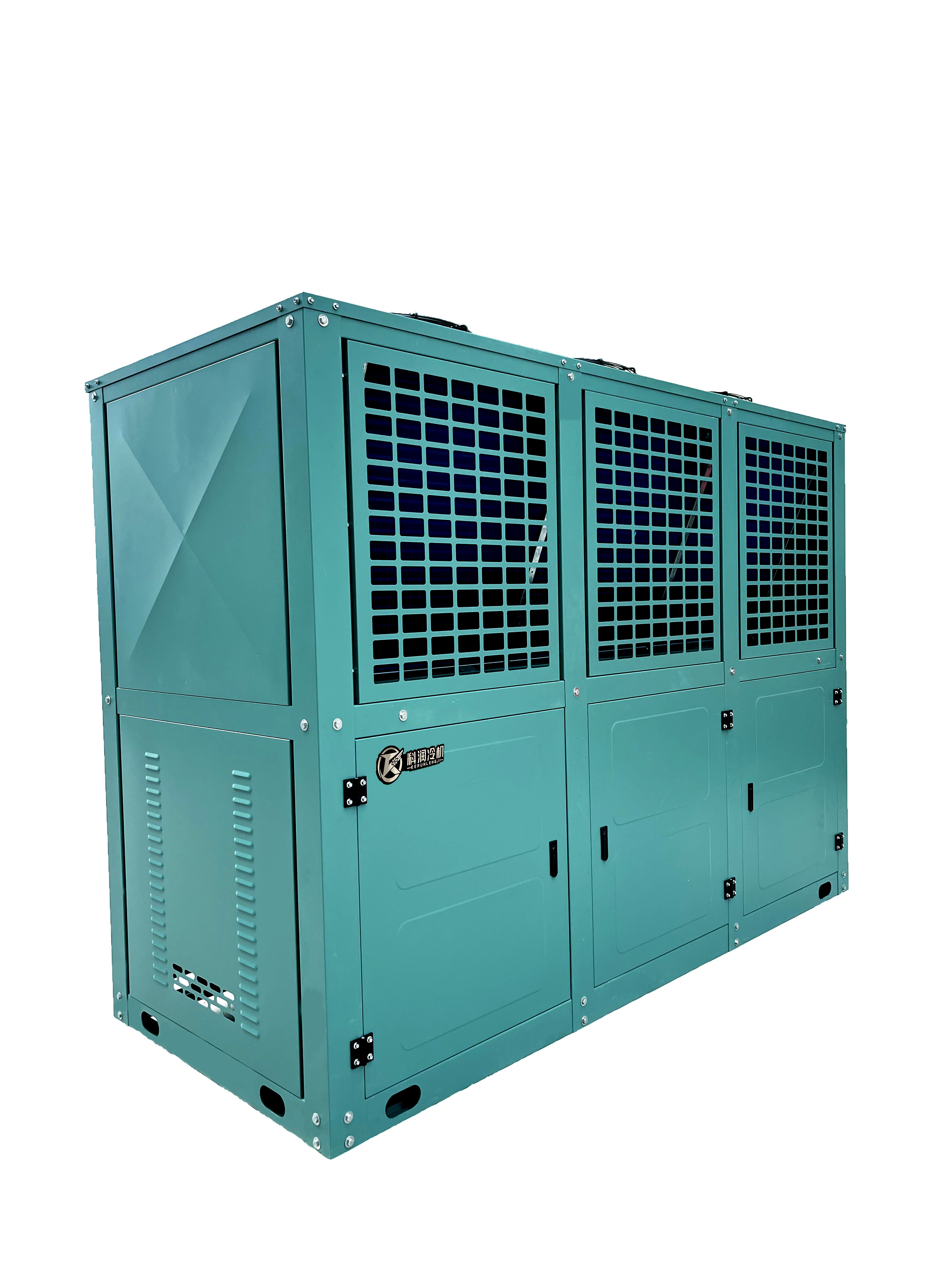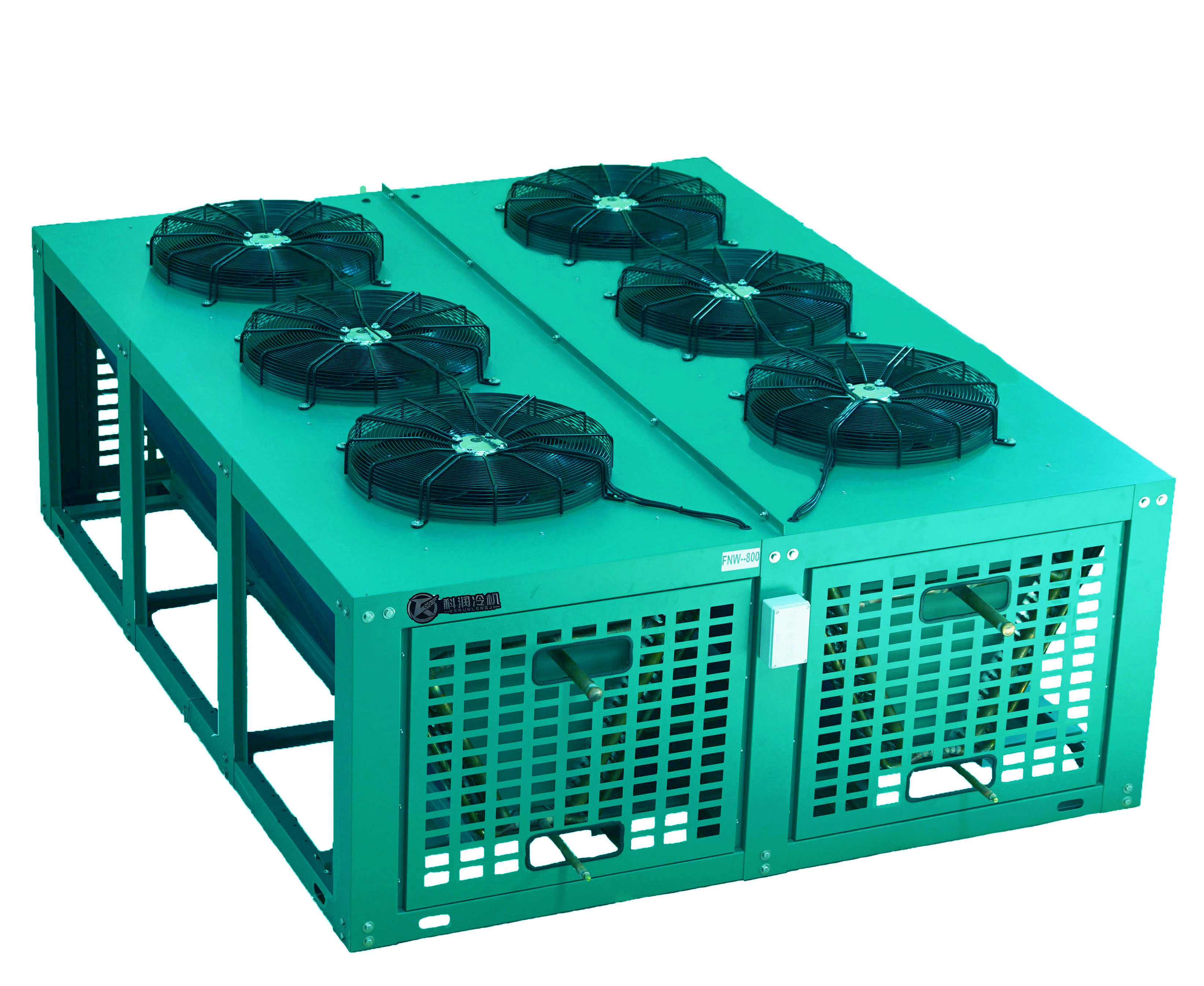 V型箱式冷凝器 板材加厚,结构更加稳定。 底部安装快装支架,安装方便快捷,可根据需求调整机组位置。 可装半封闭活塞机;可装全封闭涡旋机。