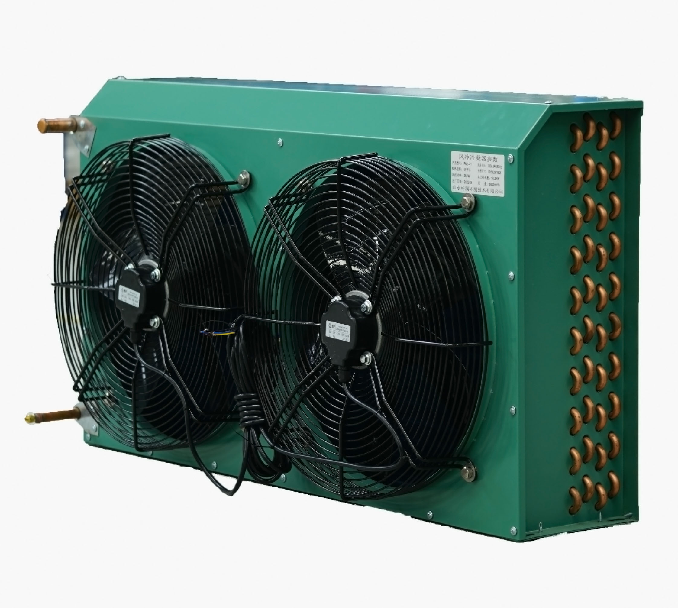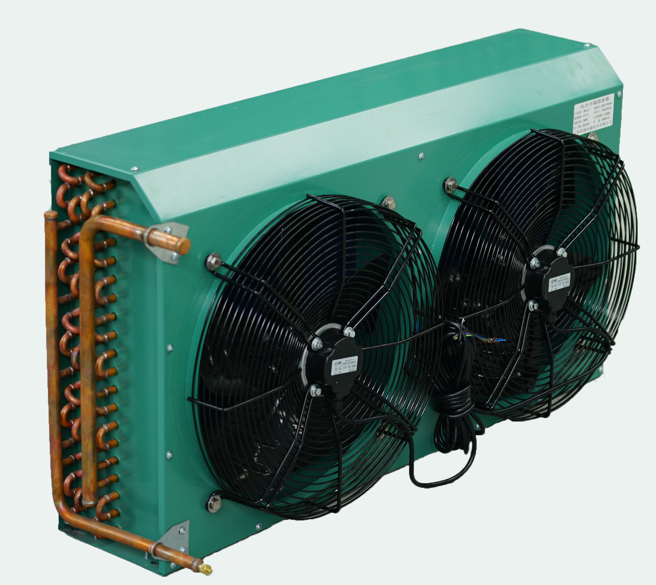 平板冷凝器 采用铜管铝片式风冷凝器,换热效率高,使用寿命长。 采用品牌外转子电机,噪音小,效率高。 结构紧凑,重量较轻,运行安全,稳定可靠。 敞开式结构,便于维修,部件少,性价比高。